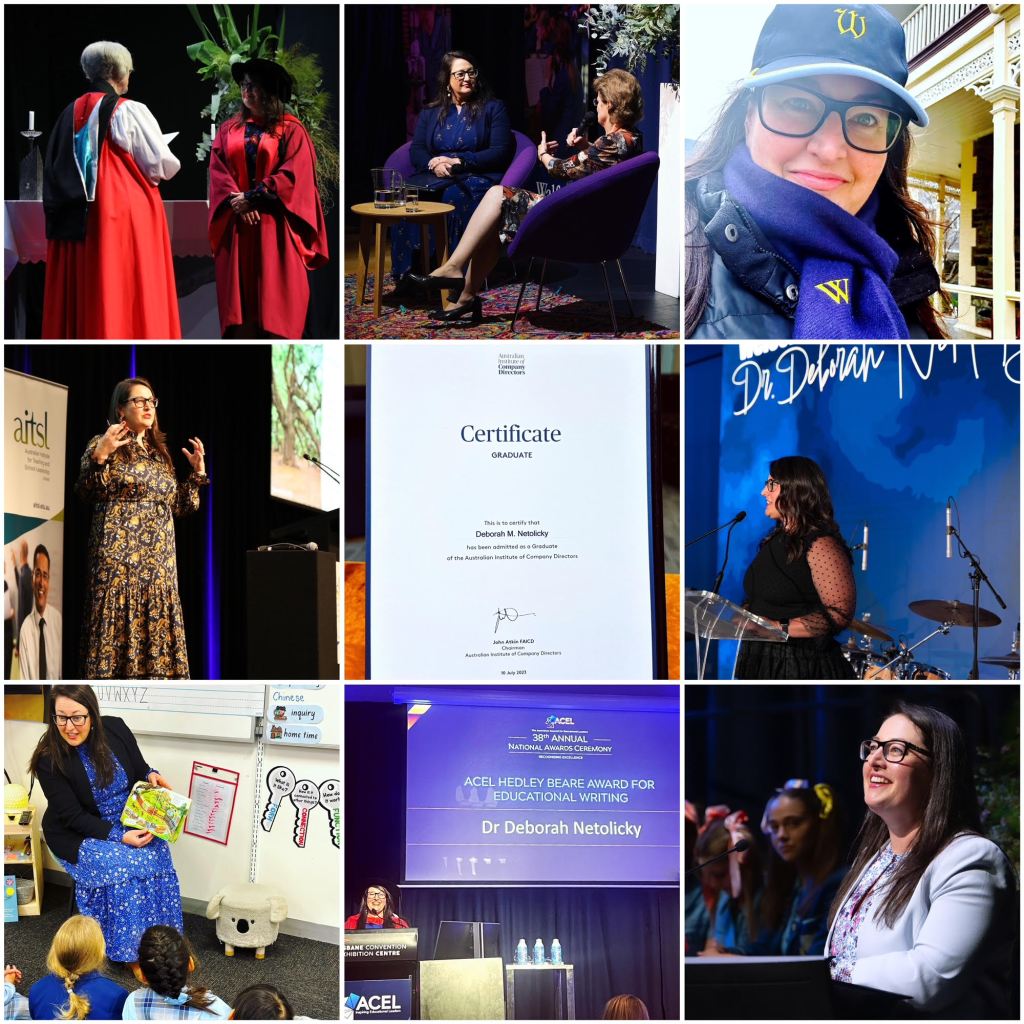 I began as Principal at Walford Anglican School for Girls, where this year we launched our 2023-2025 Strategic Plan, a new scholarship, a wellbeing dog program, staff learning communities, and a staff wellbeing committee. We refreshed the school’s values in consultation with students and introduced values awards. We engaged extensively in Reconciliation, service, enterprise learning, a glowing IB PYP evaluation, and designing bespoke senior secondary pathways for students. We undertook significant stakeholder consultation as part of a review and redesign of the uniform. We reviewed the shape of the school day and the café menu, and built new play spaces for our early and junior years. I have learned much about traffic safety and significant trees. We enjoyed community events and incredible showcases of student talent and hard work.
